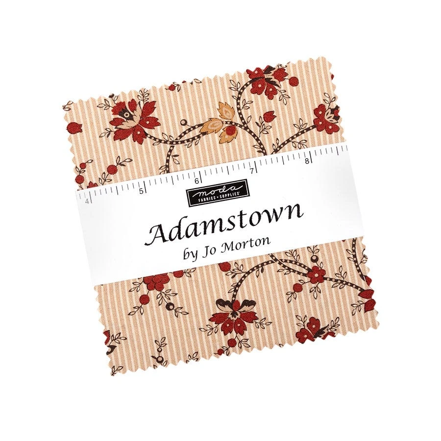 Jo Morton continues to impress in her signature style with fabrics of traditional elements and designs. Adamstown boasts sophisticated colors and patterns true to 19th century designs including florals and stripes. Pair these prints with corresponding Bellas Solids by Moda Fabrics for some elegant projects!