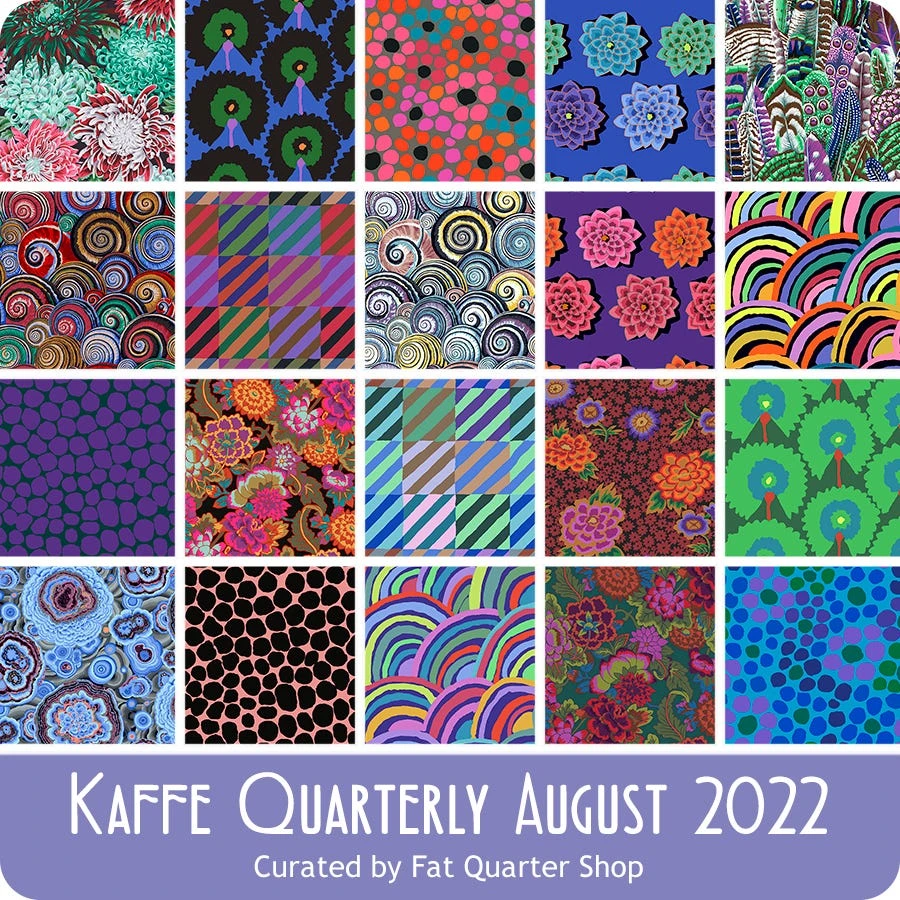 August 2022 Kaffe Collective Quarterly Fan Club Bundle includes 20 fat quarters