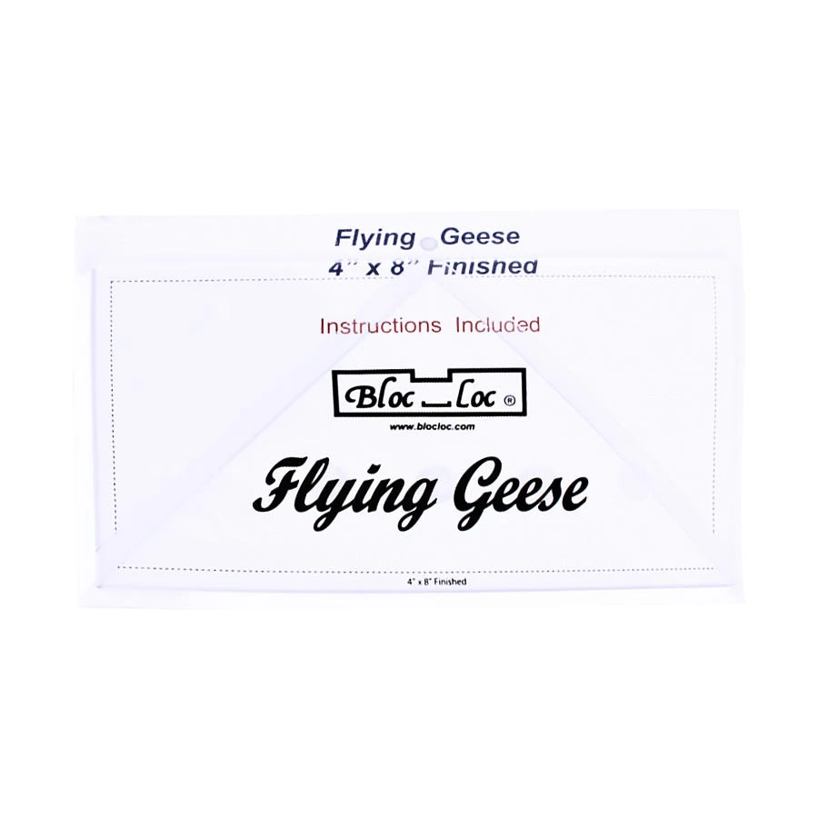 Ruler size: 4″ x 8″The Flying Geese Square Up Ruler from Bloc_Loc eliminates most, if not all of your Flying Geese errors, quickly and easily. The patent pending channel locks onto both seam allowances and slides to square up your Flying Geese. Works on all Flying Geese block methods. You will never take the top off a Goose again. Includes easy to follow instructions.