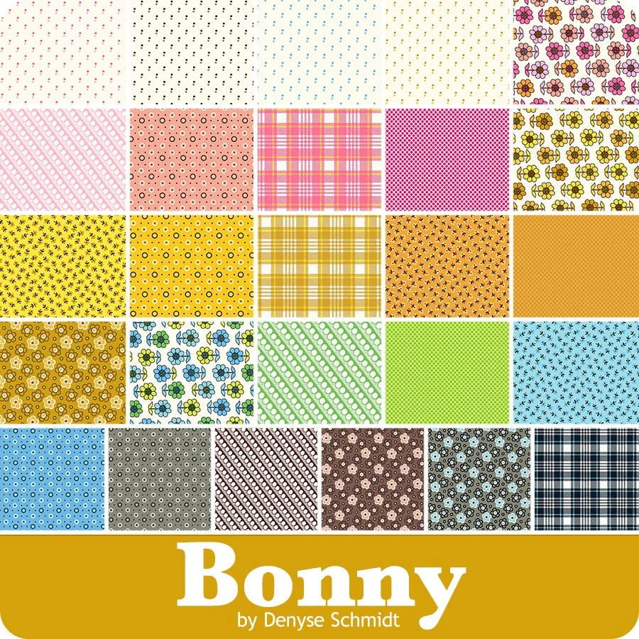 Bonny Layer Cake includes 42 10″ squares and includes duplicates of some prints. <br/><br/> Price will be $41.98. <br/><br/> Expected ship date of November 2023. <br><br> Looking for fun and fabulous prints? Well look no further than this bright and exciting collection by designer <a tabindex=”0″ href=”https://www.fatquartershop.com/denyse-schmidt-windham-fabrics”>Denyse Schmidt</a>. <a tabindex=”0″ href=”https://www.fatquartershop.com/windham-fabrics/bonny-denyse-schmidt-windham-fabrics”>Bonny</a> features unique hues decorating different <a tabindex=”0″ href=”https://www.fatquartershop.com/geometric-fabric”>geometric</a> designs and blooming <a tabindex=”0″ href=”https://www.fatquartershop.com/floral-fabric”>florals</a>, perfect for adding a little pop of color to your next project. Pair these prints with the coordinating prints from <a tabindex=”0″ href=”https://www.fatquartershop.com/windham-fabrics”>Windham Fabrics</a> to create some amazing projects!