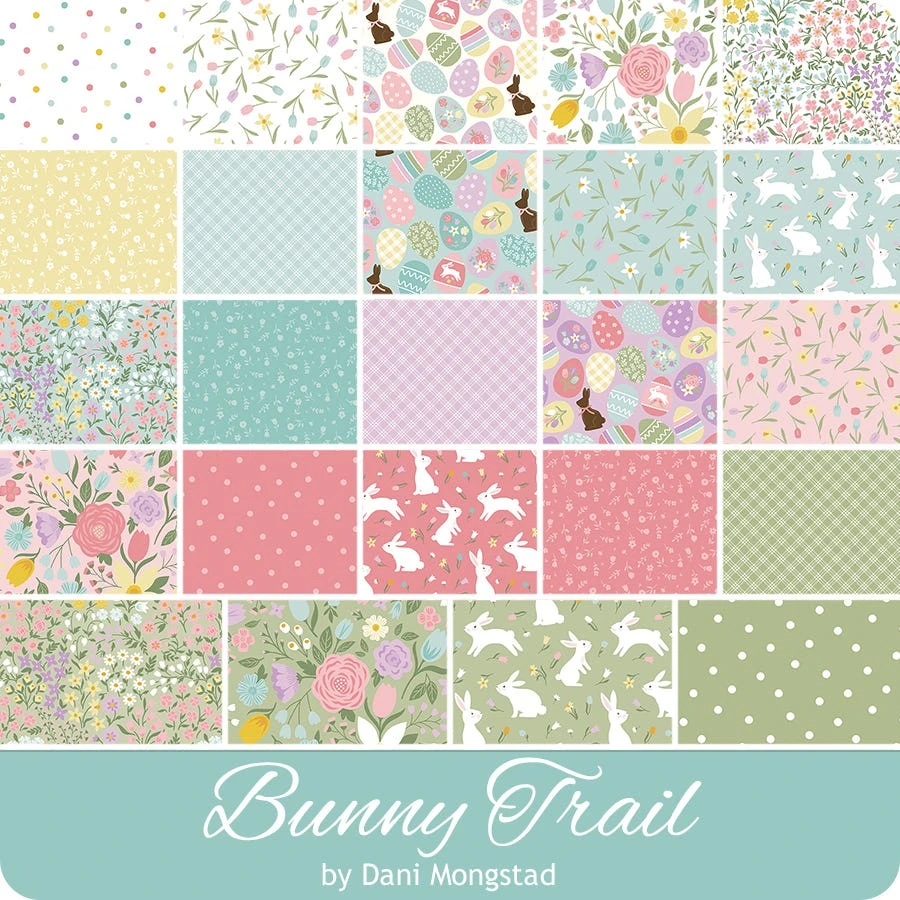 Bunny Trail Fat Quarter Bundle includes 24 fat quarters. <br/><br/> Price will be $71.98. <br/><br/> Expected ship date of December 2023. <br><br> Hop your way over to your sewing machine to piece together an <a tabindex=”0″ href=”https://www.fatquartershop.com/easter-quilting-fabrics”>Easter</a> inspired project! <a tabindex=”0″ href=”https://www.fatquartershop.com/dani-mogstad-riley-blake-designs”>Dani Mogstad</a> has given you the <a href=”https://www.fatquartershop.com/riley-blake-fabric/bunny-trail-dani-mogstad-riley-blake-designs”>Bunny Trail</a> collection! This collection is full of hoping bunnies, blooming florals, bright hues and so much more! Perfect for your next egg hunting adventure. Pair these prints with the corresponding <a tabindex=”0″ title=”Confetti Cottons Solids” href=”https://www.fatquartershop.com/riley-blake-fabric/confetti-cottons-solids-riley-blake-designs”>Confetti Cottons Solids</a> from <a tabindex=”0″ title=”Riley Blake Designs” href=”https://www.fatquartershop.com/riley-blake-fabric”>Riley Blake Designs</a> to create some festive projects!