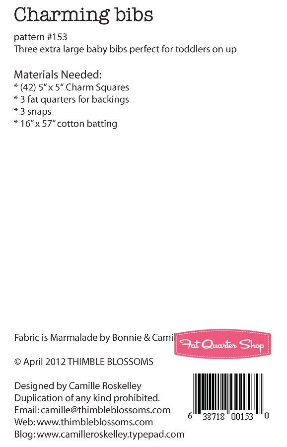 Charming Bibs Downloadable PDF PatternThimble Blossoms