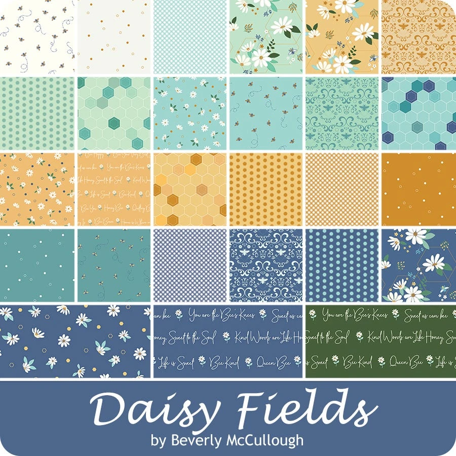 Inspired by the hardworking honeybee, Daisy Fields is a light and colorful collection of dots, ginghams, geometric patterns, text, florals and of course the honeybee! Designer Beverly McCullough paints with shapes in this gorgeous collection. Pair these prints with corresponding Confetti Cottons Solids from Riley Blake Designs for some buzzing new crafts!