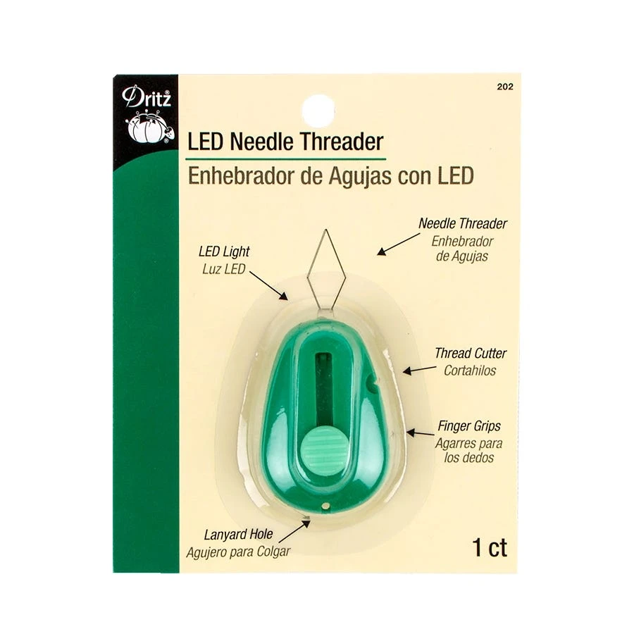 Stop straining your vision trying to thread your needles. With the Dritz LED Needle Threader, thread your needles faster and easier than ever. Rgw retractable wire stays protected while not in use and when you expose the wire your LED light activates. Features: Finger grip for stability and comfort Built-in thread cutter Made with super fine steel wire Lanyard hole for adding cord or string Size: 1.125″ x 1.75″ closed and 1.125″ x 2.625″ open