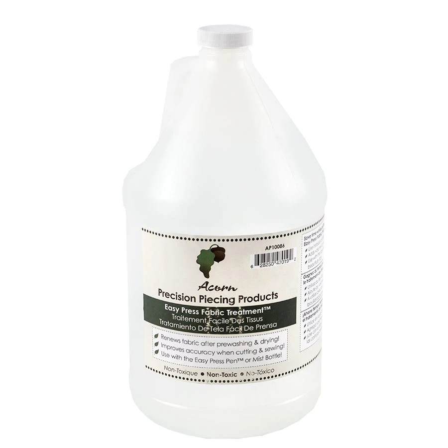 Easy Press Fabric Treatment is just what you need to achieve precise seams while saving time. This solution will also add volume to your fabric and inhibit fraying. This bottle includes 1 gallon of fabric treatment.