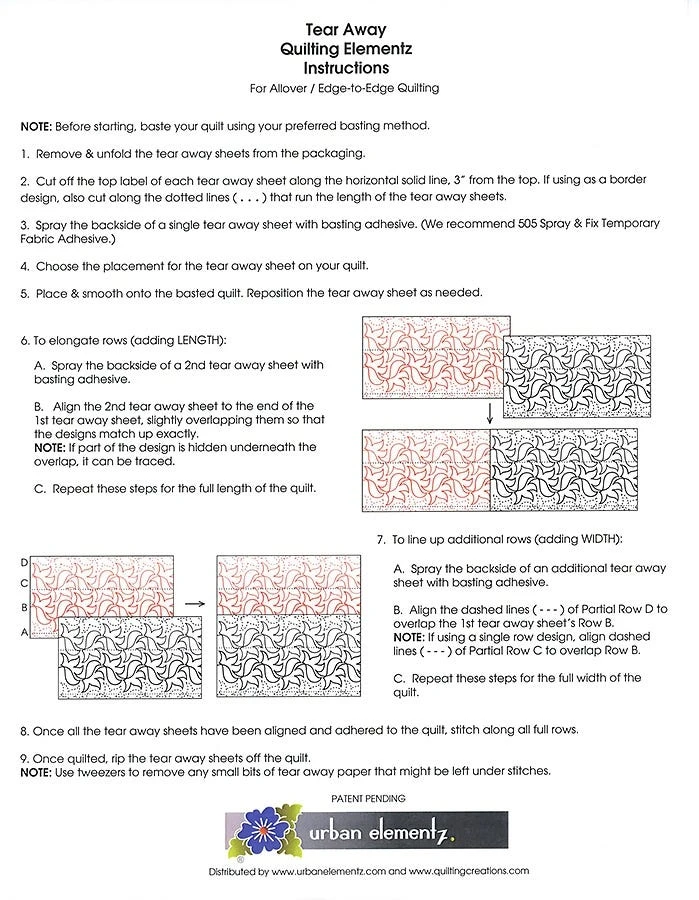 We recommend you use a basting spray or adhesive spray to adhere the paper to your fabric. Slightly spray the back of your tear away paper pattern and place it on your fabric to begin.