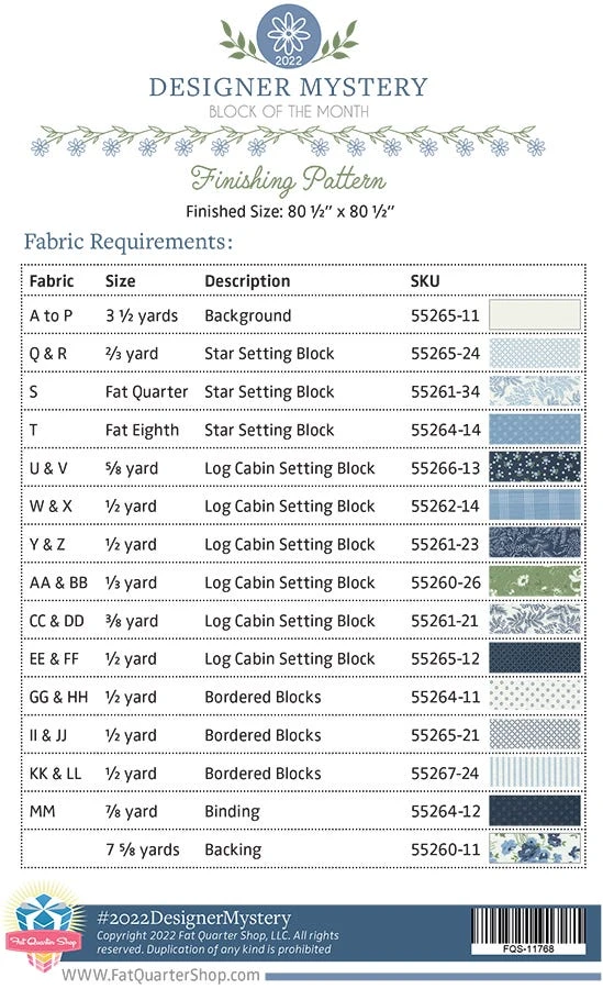 Finished size: 80.5” x 80.5”