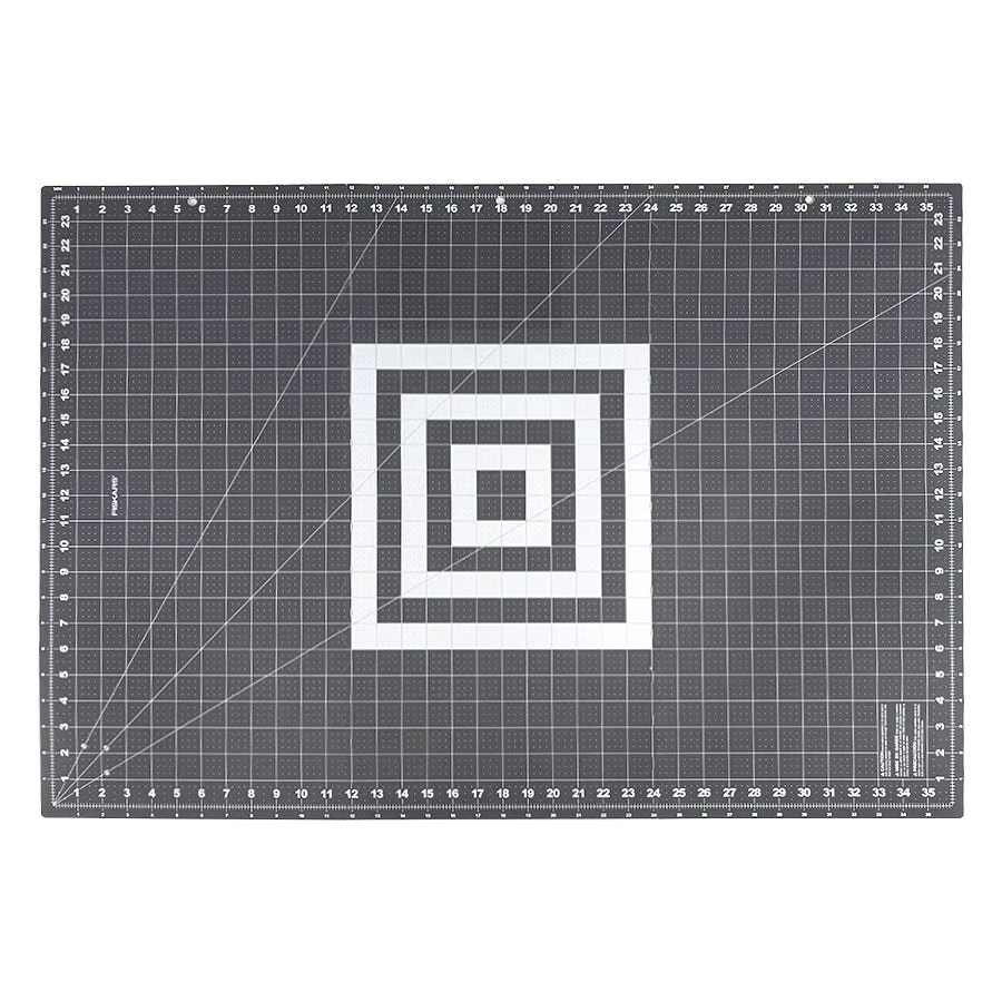 Fiskars 24″ x 36″ Self-Healing Folding Rotary Mat simplifies cutting fabric squares and more. The large surface allows you to cut fabric right off the bolt and the square center grid is great for cutting perfectly accurate square blocks. The self healing surface is durable and features easy-to-read measuring grids.