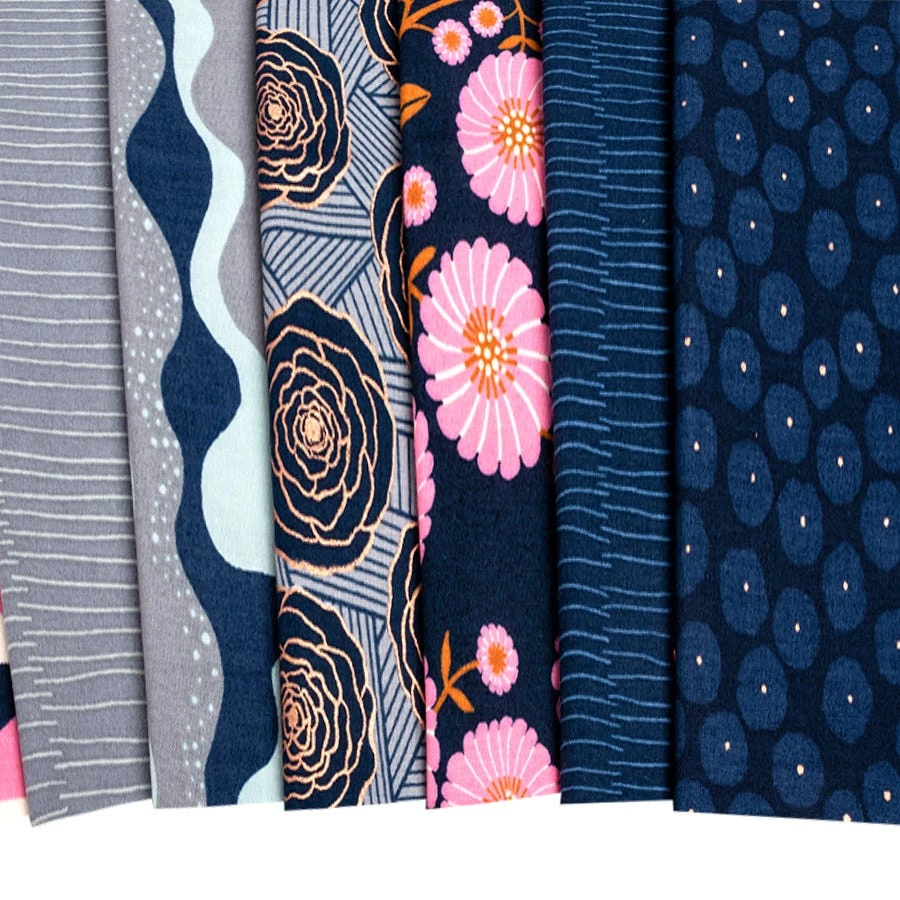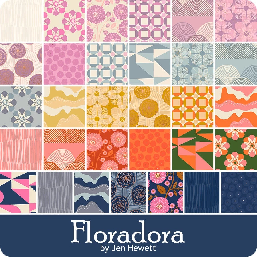 Stop to smell the roses in Floradora, a contemporary collection from Ruby Star Society. Jen Hewett blends bold blooms with gorgeous geometric designs and darling dots in green, orange, yellow, pink, purple, blue and a sprinkling of metallic, too.