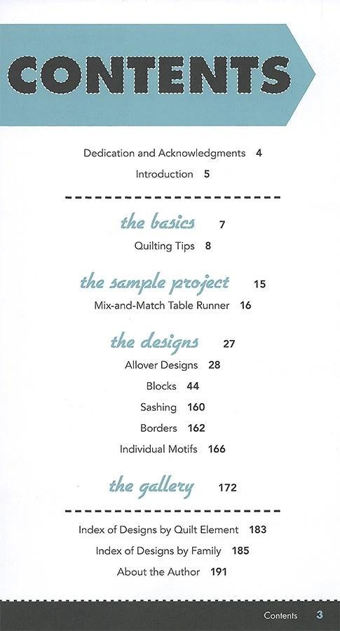 Free Motion Quilting Idea Book brings you 155 mix-and-match designs to implement into your quilting. Step up your free motion quilting with multiple design ideas for 30 different blocks, plus addition designs for sashing, borders and all over motifs. Includes a bonus table runner project to get started and practice before jumping into your quilt tops.