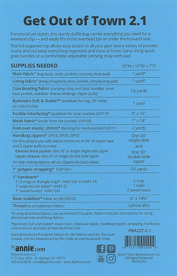 Get Out Of Town 2.1 Sewing PatternByAnnie #PBA-227-2.1