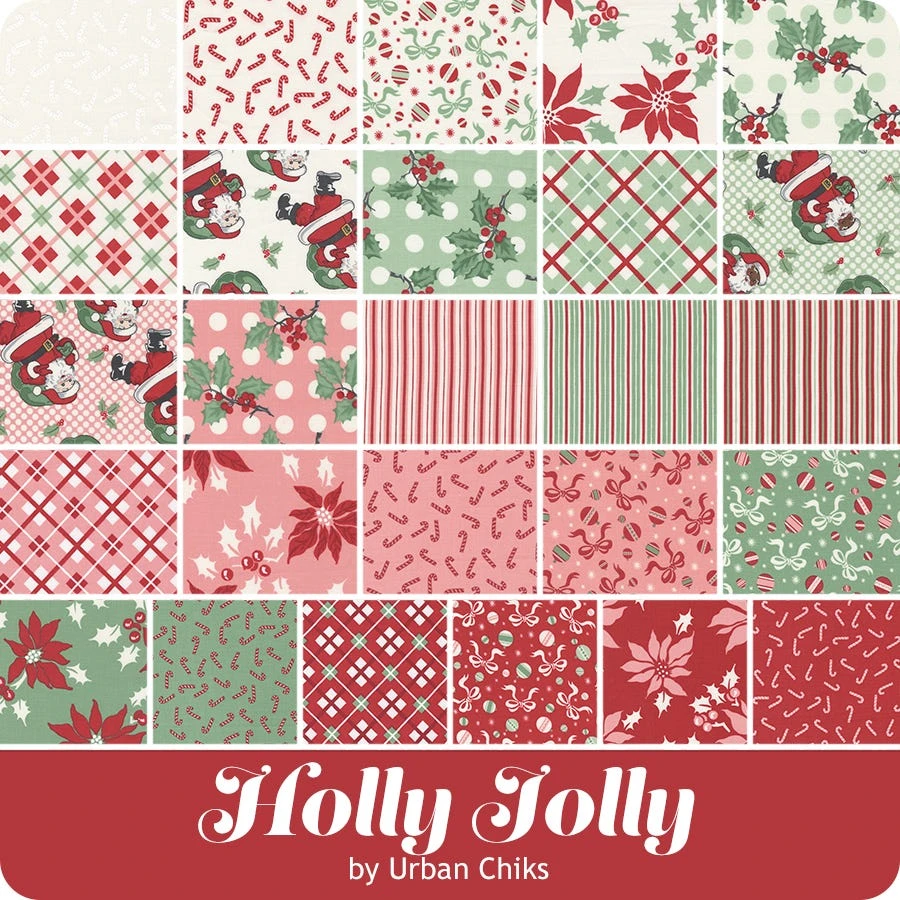 Let designer Urban Chiks help you put the Holly Jolly in Christmas! With classic designs like plaids and stripes next to poinsettias, candy canes, ornaments, holly berries on beds of dots and even old Saint Nick delivering gifts! A collection with something for everyone. Pair these prints with corresponding Bella Solids from Moda Fabrics for some festive designs!