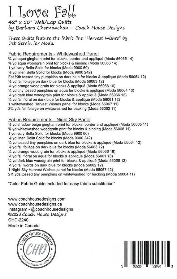 Be the first to review “I Love Fall Quilt PatternCoach House Designs #CHD-2240” Cancel reply