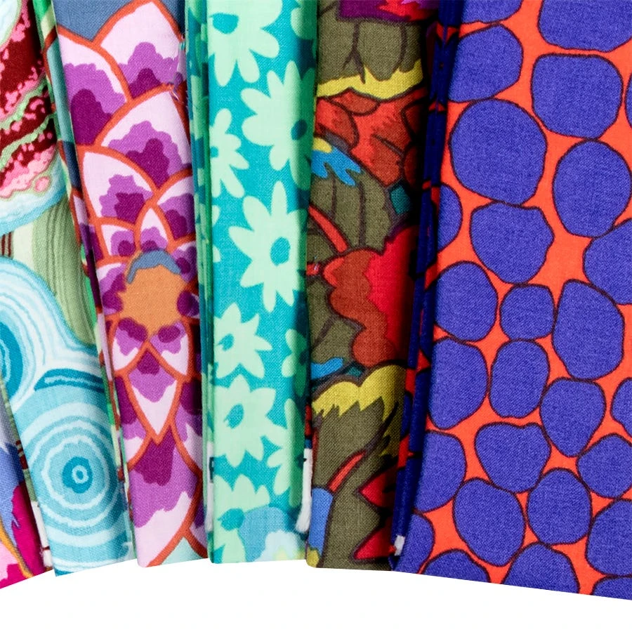 The Kaffe Fassett Collective has been inspiring us for years with Fassett’s distinct blend of bold color and composition. The patterns he uses are simple but incredibly graphic and uniquely Kaffe! Refreshing floral mosaics and geometric designs in chilly blues, greens and purples which clash in the beautiful cacophony of the Collective.