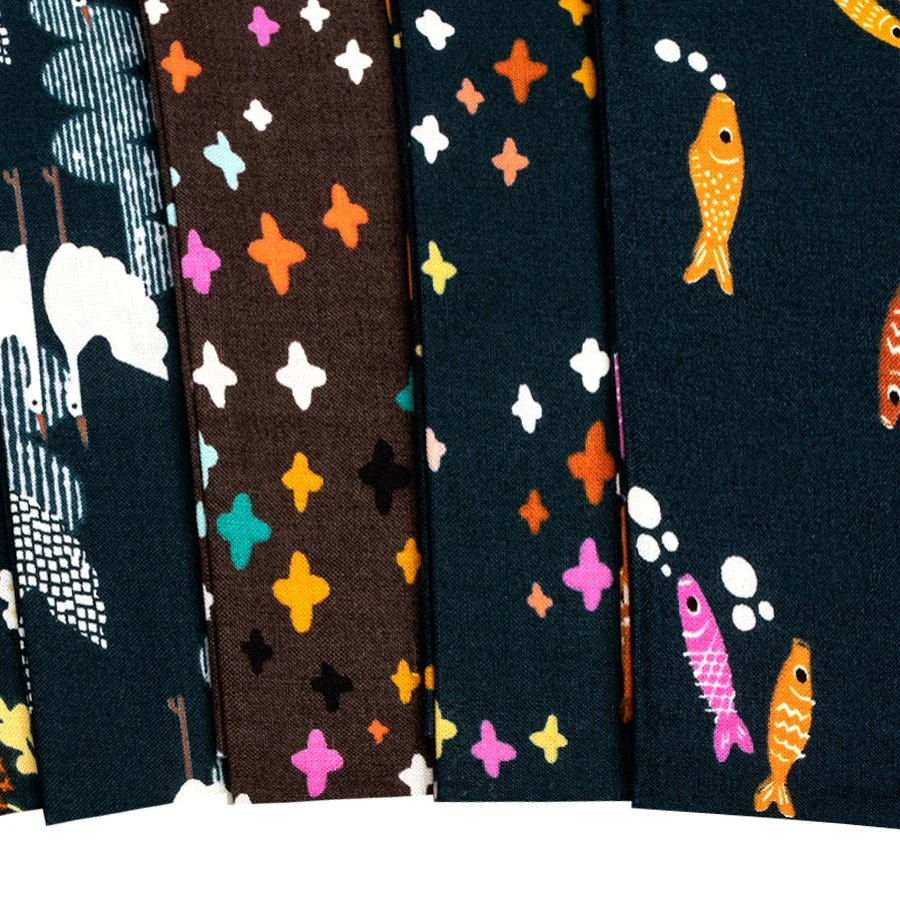 Sitting by the Koi Pond, watching the ripples dance over the hornwort, Rashida Coleman-Hale gives us refuge in a garden. By day, the fish and cranes entertain us. By night, the stars sparkle in the air. Pair these prints with the corresponding Basics from Ruby Star Society to create some enchanting projects!