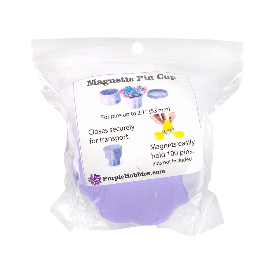 Lilac Large Magnetic Pin Cup is perfect for storing pins, needles or paperclips. This nifty notion is collapsible and capable of holding up to 100 2.1″ pins. Each cup comes with a removable lid to keep your pins safe and secure.