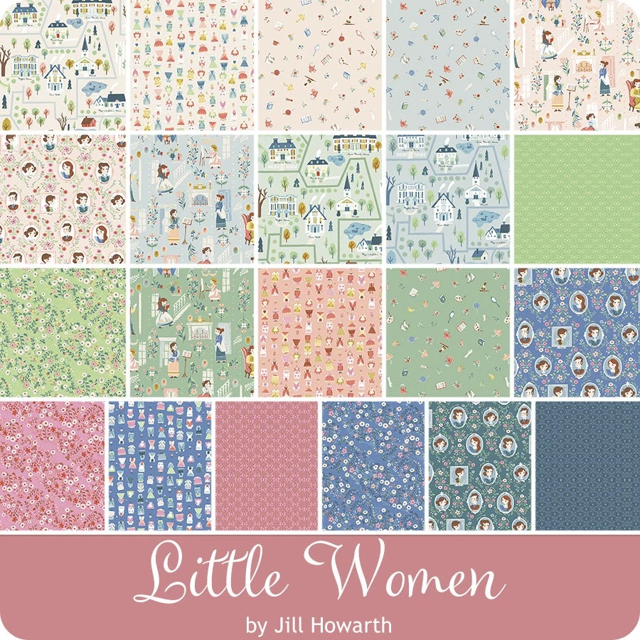 There is always light behind the clouds. In Little Women, Jill Howarth takes the elements from Louisa May Alcott’s treasured and timeless novel and presents you with lots of options to bring these images into your own decor. Orchard House comes to life again with Marmee, Jo, Meg, Beth, Amy and Laurie all appearing to sing, read, paint and fill the home with warmth and joy. Small blooms, florals, teapots, dresses, wallpaper-inspired designs and a charming neighborhood print will make this collection perfect for new and old fans of the book. Pair these prints with the corresponding Confetti Cotton Solids from Riley Blake Designs to create some classic projects!
