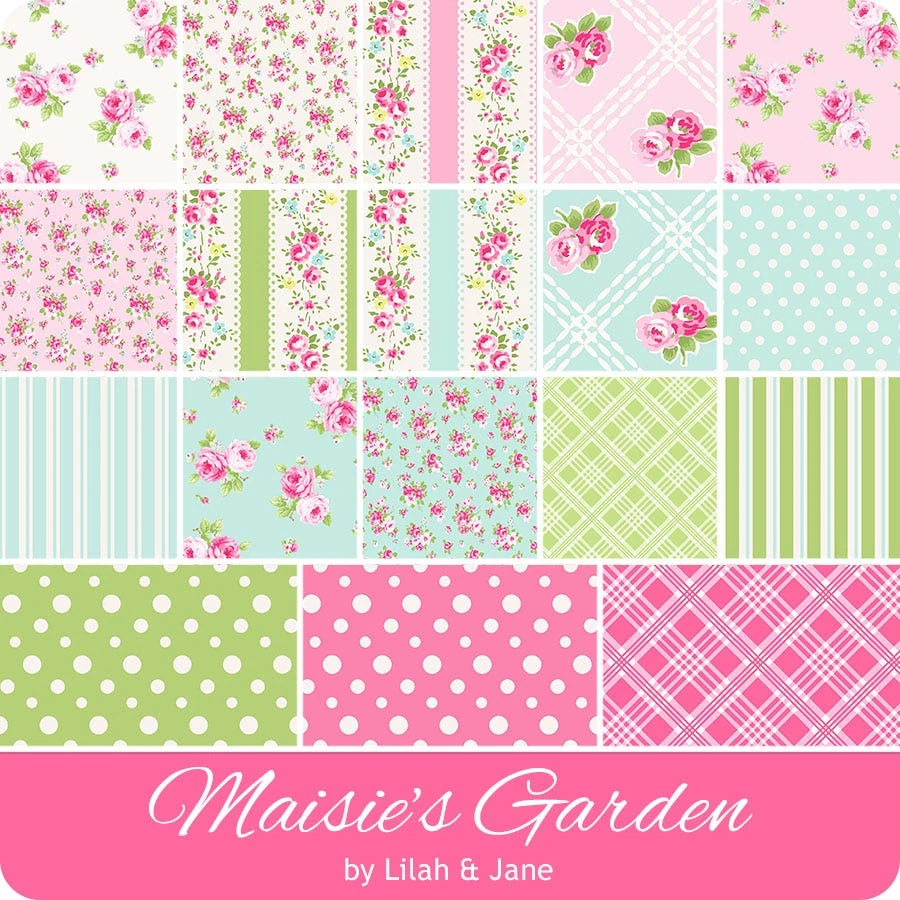 Stop to smell the roses in Maisie’s Garden, a floral collection from Freckle + Lollie Fabrics. This beautiful bouquet of prints by Lilah & Jane features radiant roses and a spattering of stripes, polka dots and plaids in pink, green, teal and cream.