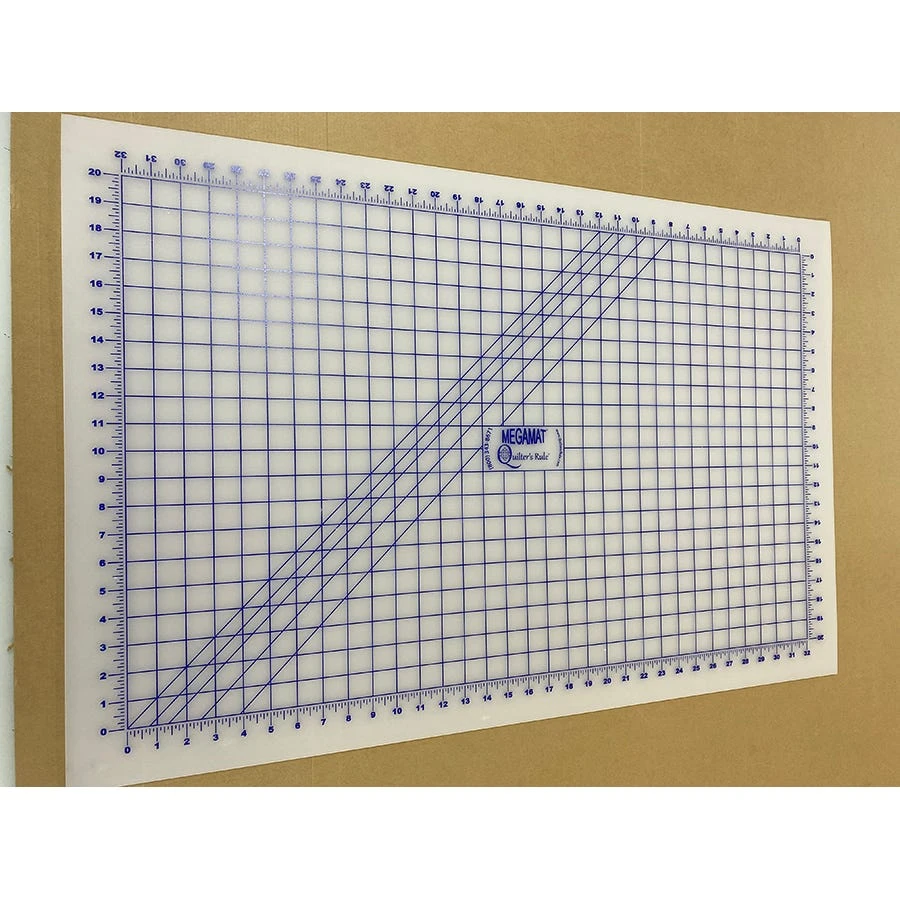 MegaMat by Quilter’s Rule is made of high-quality, low-density polyethylene and is designed to withstand any sort of cut. The simple design makes for a simple cut, leaving cutting lanes clear – numbers are posted on the outside of the grid. Yardage sizes included on top and bottom of grid allow for even easier cutting work.Sizes: Grid size – 20″ x 32″ Full mat – 24″ x 36″Features:Fits on top of your home hobby tableWhite plastic with simple grid layout printed in blueSmooth, unprinted side on backGridded, pinnable mat – Full size is 24″ x 36″MegaMat Care Guide – click here for instructions to extend the length of your mat’s life.Shipping note: This product ships separately from a third party, typically in 2-4 business days. Item cannot be shipped to P.O. boxes, Hawaii, Alaska or outside the contiguous U.S. Also, it cannot be shipped internationally. Not eligible for express shipping.