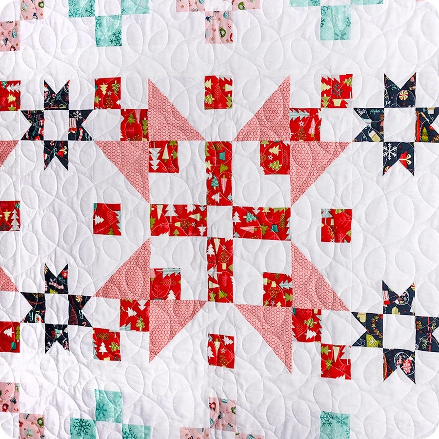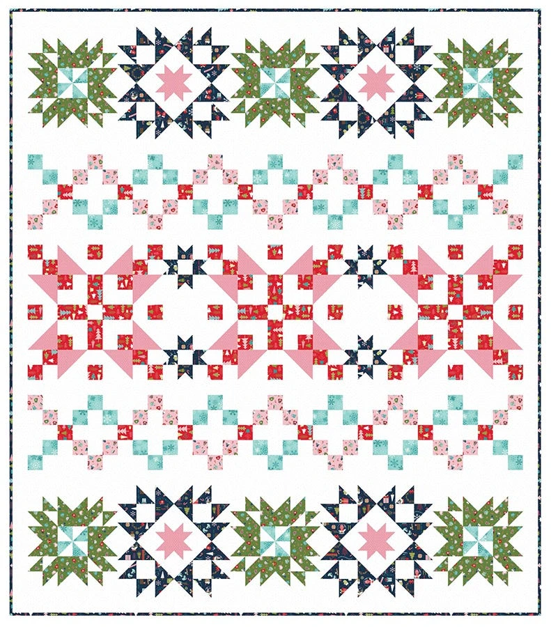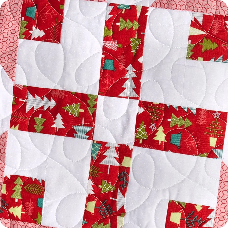 Kimberbell’s hot cocoa mug is running over! Cup of Cheer is a charming Maywood collection full of striped gift wrapping designs, Christmas trees, candy canes, holly, chilly swirls, big snowflakes and decorated houses. Take these delightfully festive prints to design some projects to warm the hearts of those who fill your cup all year long.