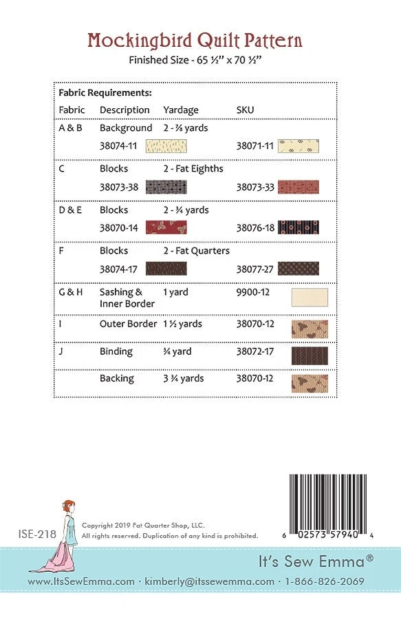 Mockingbird Downloadable PDF Quilt PatternIt’s Sew Emma