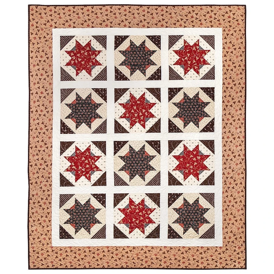 Simple stars sing sweetly in Mockingbird. This quilt pattern looks lovely in all sorts of styles, from rich reproductions to modern brights and allows you to play with multiple backgrounds, focal and accent prints! Ideal for classes and swaps, this pattern will easily become a classic. Finished size: 65.5″ x 70.5″ A link to download this pattern will be included in your order confirmation email. You can also download it in your My Account under My Downloadable Products. Please save the file to your personal computer when possible as there are a limited amount of downloads per pattern.If you need any help downloading or printing your PDF, follow the steps in our Guide to PDF Patterns. 9 pages