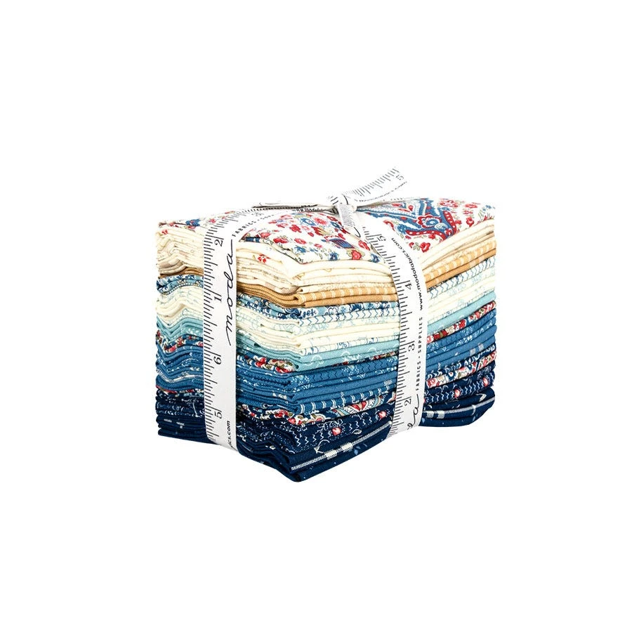 Minick & Simpson continues to wow with their refreshing spins on traditional elements. Newport is home to dancing paisleys, scattered dots, tossed blooms, text, stripes and plaids. With a patriotic color palette, this assortment keeps an air of pride and is perfect for apparel or quilting. Pair these prints with the corresponding Bella Cottons Solids from Moda Fabrics to create some classic projects!
