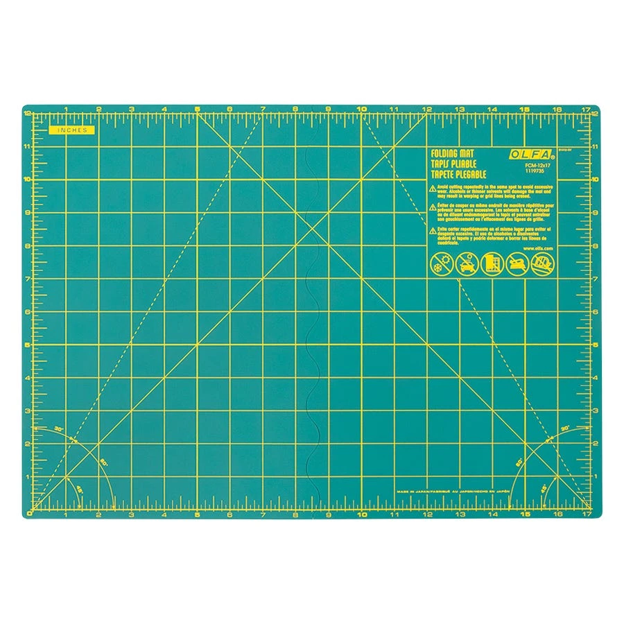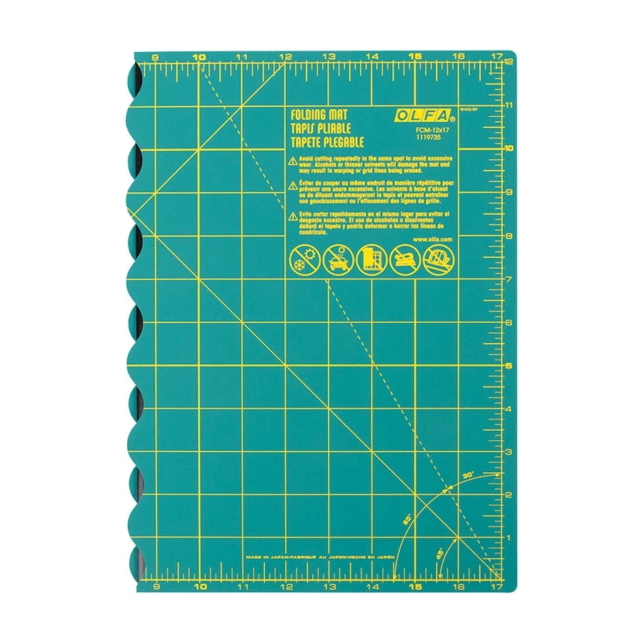 Olfa Cutting Mats are self-healing and fold for easy portability. The wavy fold line creates a smooth, seamless surface when laid flat. These folding cutting mats are 2.5mm have a padded, non-slip backing to ensure a perfect cut every time.