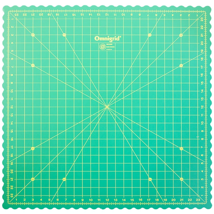 Omnigrid 360 Degree Rotating Cutting Mat makes cutting and piecing for your projects quick and easy. The self-healing, rotating surface allows you to cut fabric, paper and more without moving the material or yourself, allowing you to make your cuts in less time and with less fatigue.