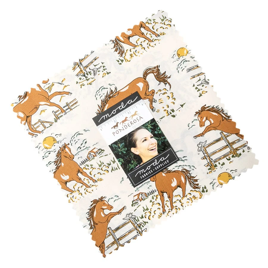 Ponderosa Layer Cake includes 42 10″ squares and includes duplicates of some prints. <br/><br/> Price will be $44.98. <br/><br/> Expected ship date of November 2023. <br><br> Yeee! Hawww! Strap on your ridding boots and your cowboy hat for this wild west inspired collection designed by <a tabindex=”0″ href=”https://www.fatquartershop.com/stacy-iest-hsu-moda-fabrics”>Stacy Iest Hsu</a>. <a href=”https://www.fatquartershop.com/moda-fabrics/ponderosa-stacy-iest-hsu-moda-fabrics”>Ponderosa</a> brings the western life to the palms of your hands, with designs of bucking <a tabindex=”0″ href=”https://www.fatquartershop.com/animal-quilt-fabrics”>horses</a>, shiny new horseshoes, blooming flowers and so much more, this collection is surely one you don’t want to miss. Pair these prints with the coordinating <a tabindex=”0″ title=”Bella Cottons Solids” href=”https://www.fatquartershop.com/moda-fabrics/bella-solids-moda-fabrics-quilting-fabrics”>Bella Cottons Solids</a> from <a tabindex=”0″ title=”Moda Fabrics” href=”https://www.fatquartershop.com/moda-fabrics”>Moda Fabrics</a> for some fun projects!