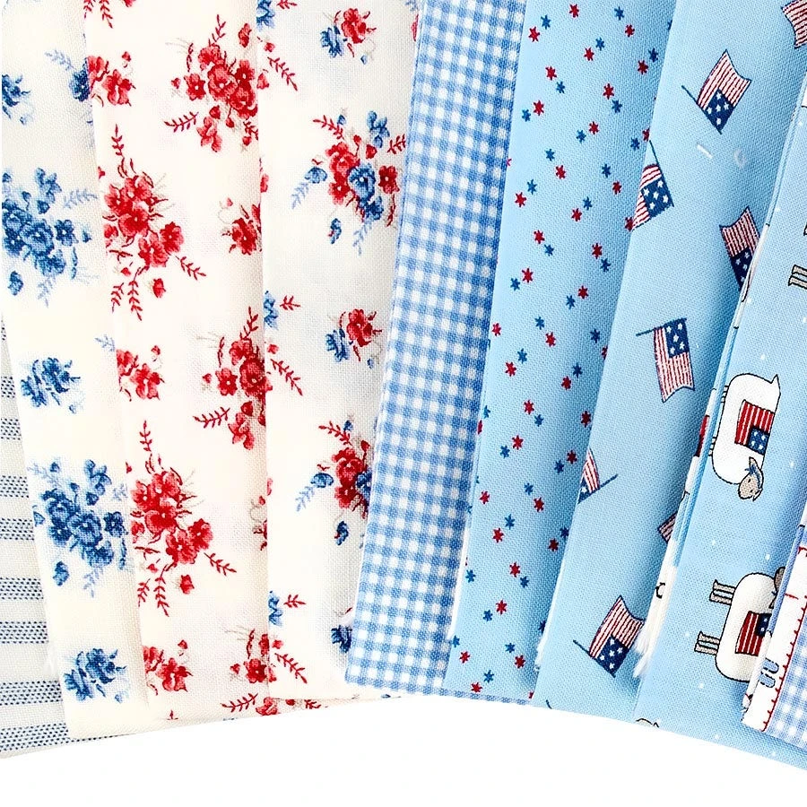 Patriotic, homey and inviting, Prairie Days from Bunny Hill Designs incorporates your favorite elements of freedom — with flags, flowers, stars and stripes in the good ol’ red, white and blue. Pair these prints with the corresponding Bella Cottons Solids from Moda Fabrics to create some classic projects!