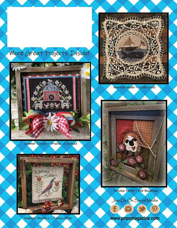 Punch Needle & Primitive Stitcher Magazine Summer 2020 Issue brings you 17 cross stitch and punch needle projects to help beat the heat. Create exclusive patterns by Priscilla & Chelsea of Stitching with the Housewives, Teresa Kogut and more for a little bit of summer fun.