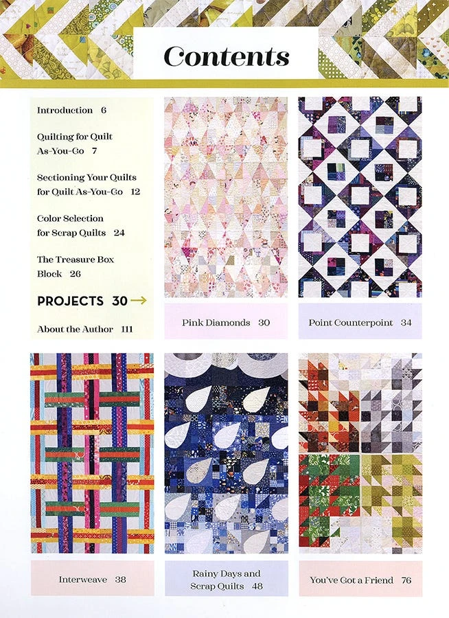 Quilt As-You-Go For Scrap Lovers Quilt Book puts your scrap stash to use. From color theory to placement techniques and a plethora of pretty projects, this book will have you seeing your stash in a new light.