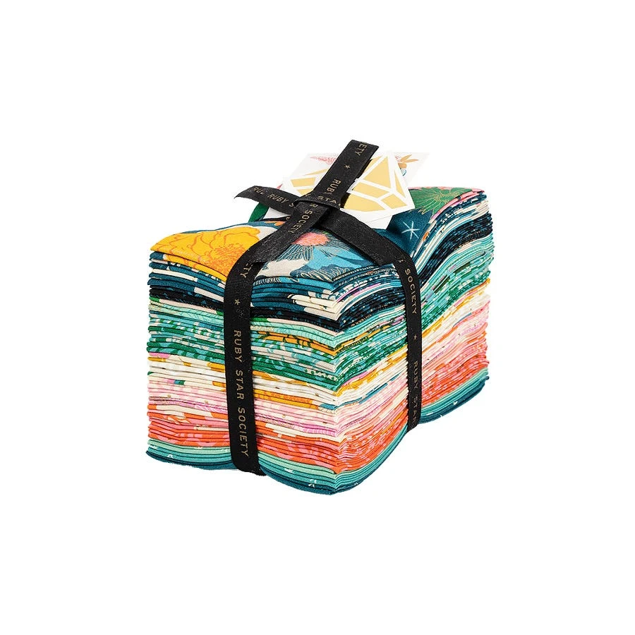 Tour a garden of color in Reverie! This collection by designer Melody Miller peaks in versatility with florals and foliage in selections that stretch the color wheel before your eyes. Her use of space goes almost unparalleled in these designs! Pair these prints with coordinating Ruby Star Basics from Ruby Star Society for some unique projects!