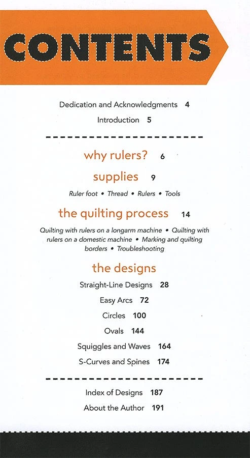 Rulerwork Quilting Idea Book brings you 59 mix-and-match designs to implement into your quilting. Use rulers to set up guidelines to then go back and fill in with free motion quilting whether you’re working on a domestic or longarm machine.