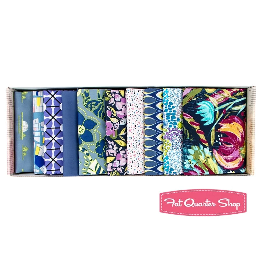 Every box is unique and includes hand selected half yard cuts from a mix of Art Gallery collections in a printed designer box.