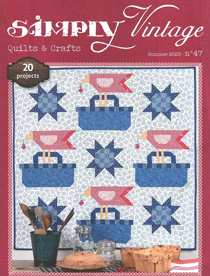 Simply Vintage Issue 47 brings you 20 precious projects to inspire fiber artists of all kinds. Take a tour of fabulous vintage fabrics and sewing supplies in the Merchant & Mills shop located southeast of London and wrap your day up with a delicious dessert using the included Strawberries and Cream Shortcakes recipe.