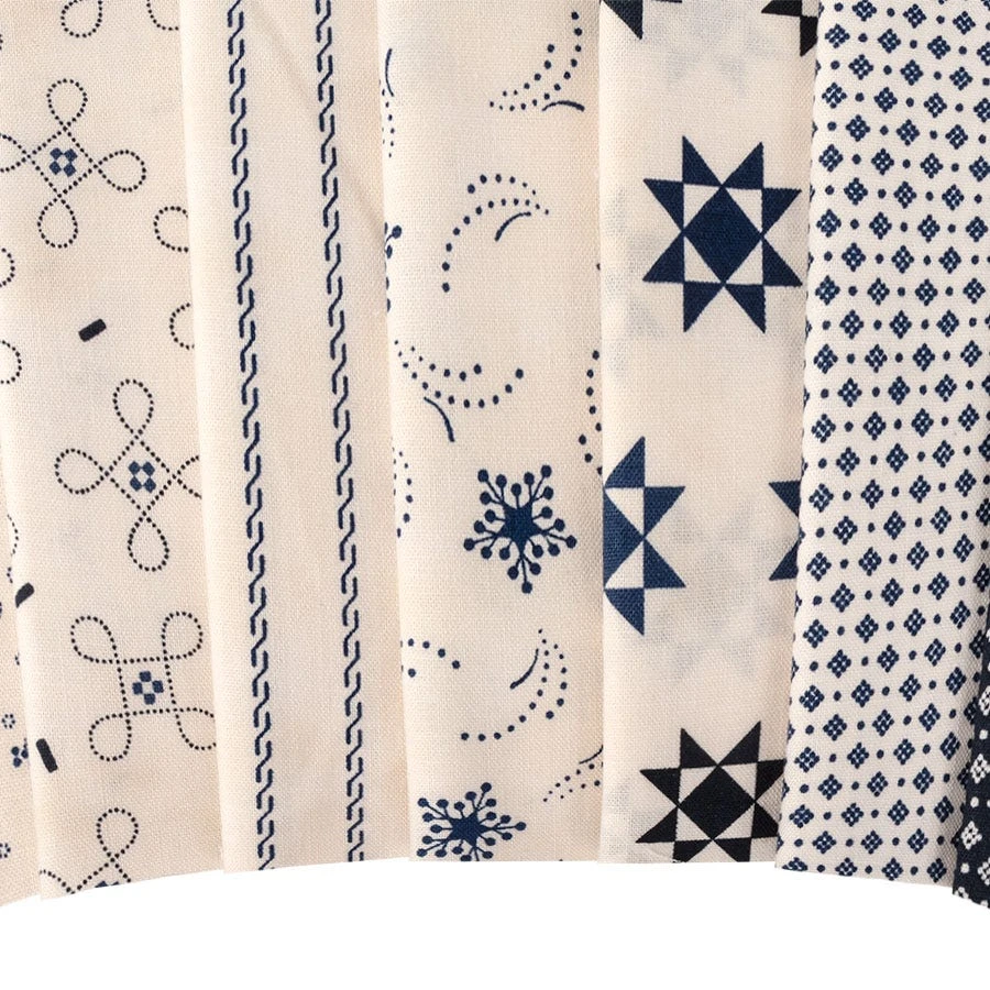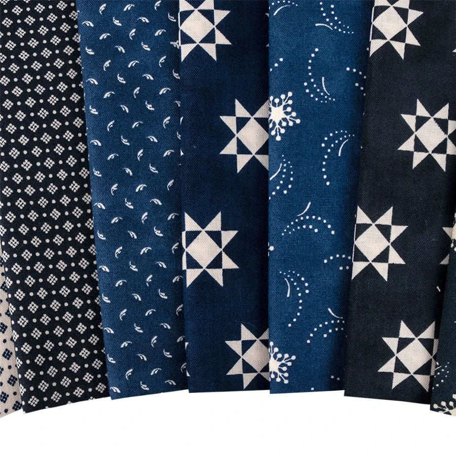 This collection gives you the palette of a moonlit night, navy, midnight blue, spruce, peacock and full moon white. With flowers, feathers, stars and dots being just a few patterns you can find in this versatile collection. Pair these prints with the corresponding Bella Cottons Solids from Moda Fabrics to create some classic projects!