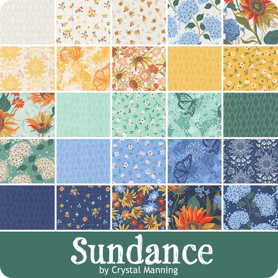 Sundance Jelly Roll includes 40 2.5″ x 42″ strips of fabric and includes duplicates of some prints <p> </p> <p id=”V834VAN”>The sun would definitely be dancing with this collection from <a tabindex=”0″ href=”https://www.fatquartershop.com/crystal-manning”>Crystal Manning</a>. <a href=”https://www.fatquartershop.com/moda-fabrics/sundance-crystal-manning-moda-fabrics”>Sundance</a> is a beautiful section of brightly colored fabric decorated with blossoming <a tabindex=”0″ href=”https://www.fatquartershop.com/floral-fabric”>florals</a>, curious <a tabindex=”0″ href=”https://www.fatquartershop.com/animal-quilt-fabrics”>butterflies</a> and <a tabindex=”0″ href=”https://www.fatquartershop.com/geometric-fabric”>unique patterns</a>. Pair these prints with the coordinating <a tabindex=”0″ title=”Bella Cottons Solids” href=”https://www.fatquartershop.com/moda-fabrics/bella-solids-moda-fabrics-quilting-fabrics”>Bella Cottons Solids</a> from <a tabindex=”0″ title=”Moda Fabrics” href=”https://www.fatquartershop.com/moda-fabrics”>Moda Fabrics</a> for some fun projects!</p>