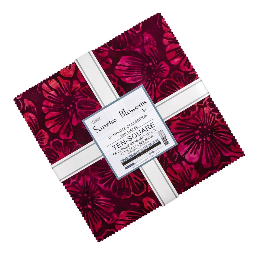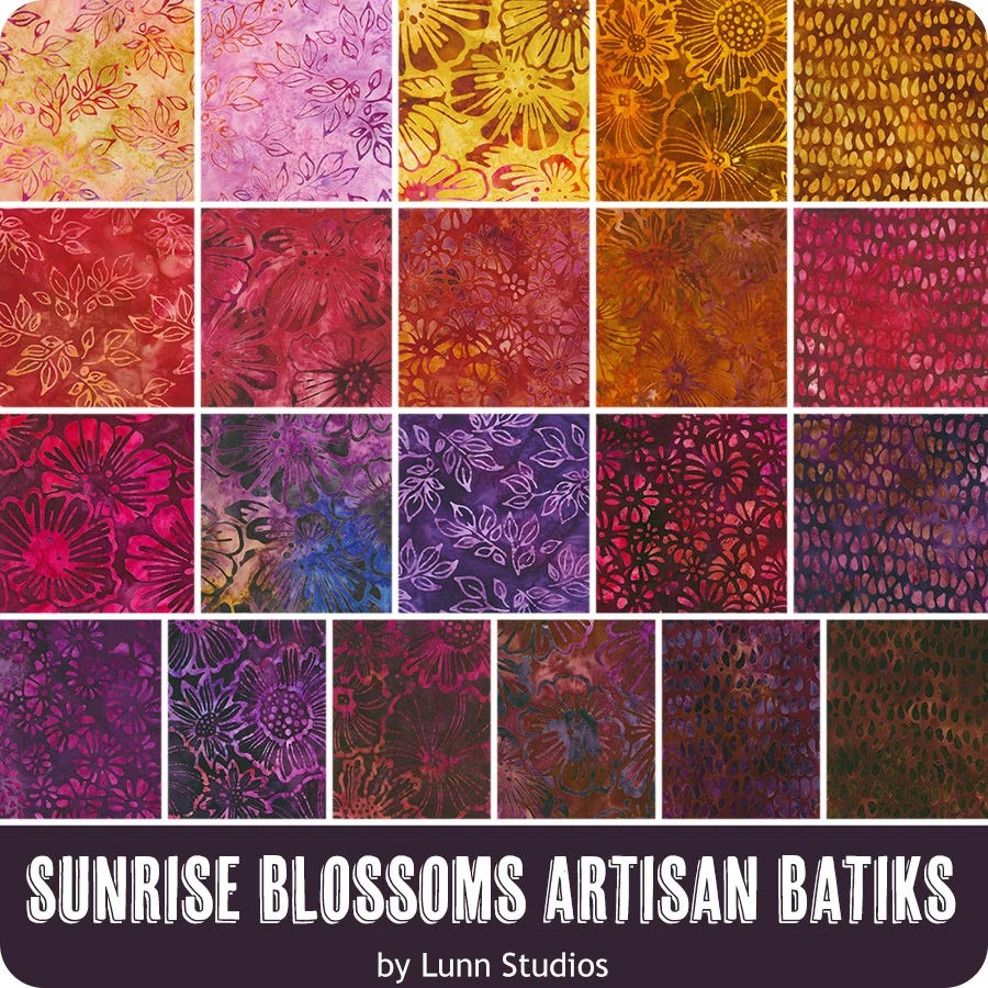 A new day is breaking over Sunrise Blossoms Artisan Batiks, a hand-dyed batik collection from Robert Kaufman Fabrics. From the dark of night to the sun’s golden light, Lunn Studios has packed this petal-filled collection with brilliant blooms in sultry purple, pink, red, gold and black hues.