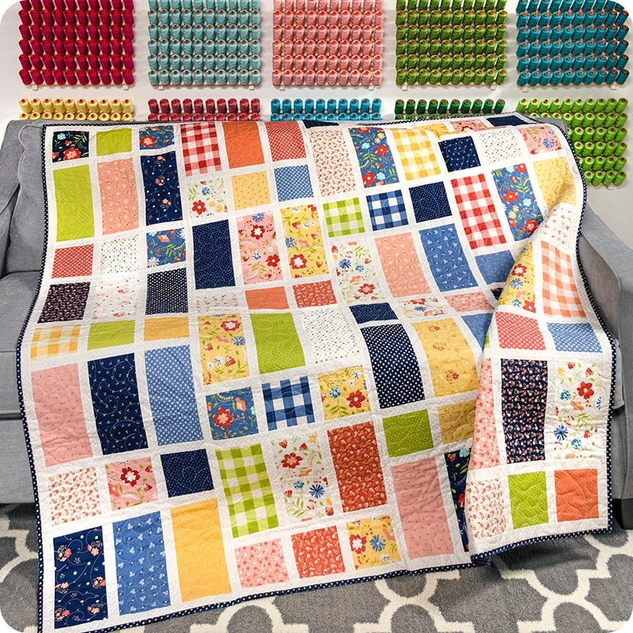 Sunwashed Jolly Bar includes 42 5″ x 10″ cuts of fabric and includes duplicates of some prints. <br><br>Includes a free pattern to make the 65.5″ x 67.5″ quilt. <br><br>Fabric requirements for Summer Picnic Jolly Bar Pattern:<BR><ul class=”prod-desc-bullet-list”> <li>Two Sunwashed Jolly Bar – SKU# 29160JB</li> <li>2.125 yards background – SKU# 29166-31</li> <li>0.75 yards binding – SKU# 29166-21</li> <li>4.25 yards backing – SKU# 29160-20</li> </ul> <p id=”OVQ4OPL”>From the warm bright tones of yellow and red to the cool dusk-like hue of blues this collection from <a tabindex=”0″ href=”https://www.fatquartershop.com/corey-yoder-little-miss-shabby-moda-fabrics”>Corey Yoder</a> is one that you would be impressed by! Bring the summer season to your hands with <a tabindex=”0″ href=”https://www.fatquartershop.com/moda-fabrics/sunwashed-corey-yoder-moda-fabrics”>Sunwashed</a>, this collection offers you spectacular colors, patterns and stunning <a tabindex=”0″ href=”https://www.fatquartershop.com/floral-fabric”>florals</a> without the uncomfortable heat. Pair these prints with the coordinating <a tabindex=”0″ title=”Bella Cottons Solids” href=”https://www.fatquartershop.com/moda-fabrics/bella-solids-moda-fabrics-quilting-fabrics”>Bella Cottons Solids</a> from <a tabindex=”0″ title=”Moda Fabrics” href=”https://www.fatquartershop.com/moda-fabrics”>Moda Fabrics</a> for some marvelous projects!</p>