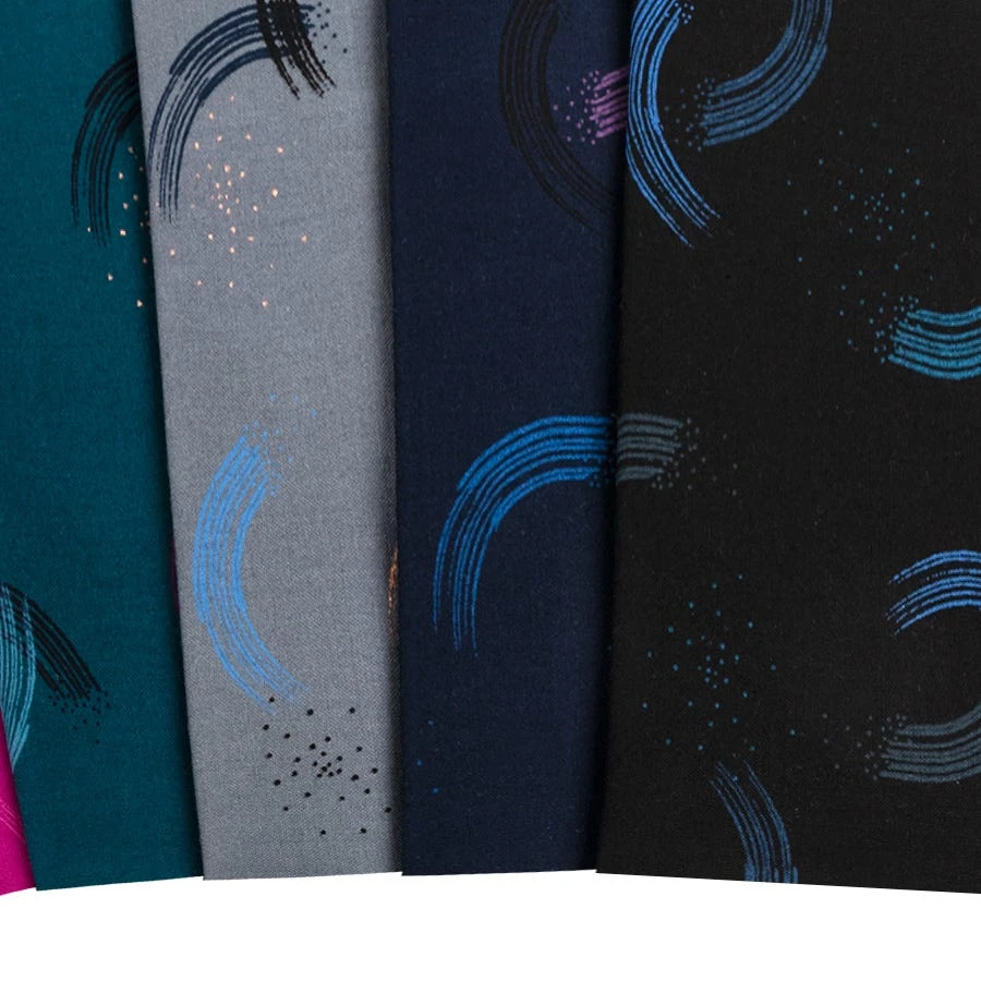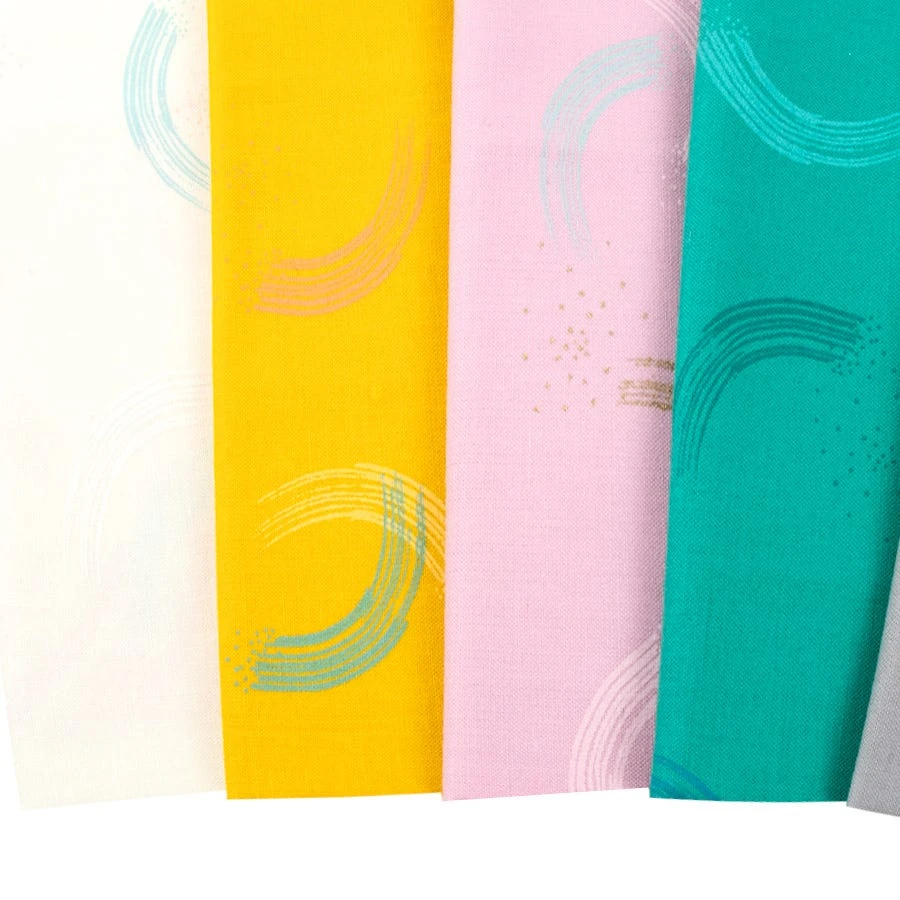 Imagine you’re spinning on a dance floor with trails of changing colors following your heels and you have Twirl by Sarah Watts. This collection of backgrounds spans multiple color variations to choose from. Pair these prints with Ruby Star Basics from Ruby Star Society for some fun projects!