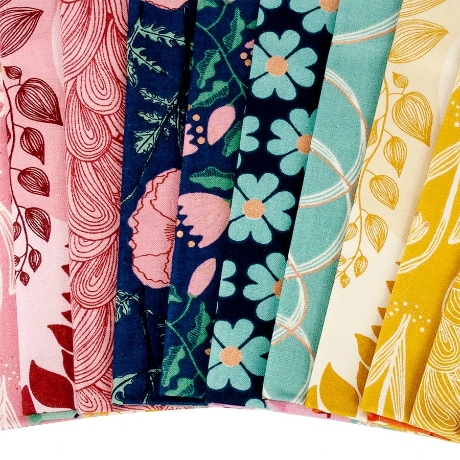 Melt into this sultry scene: A mix of warm and cool colors covered with poppies, heart flowers, climbing leaves and vines, swirling lines and more. Don’t be afraid to step out of line now with Jen Hewett in this guest collection for the Ruby Star Society, made complete with some charming and modern Canvas prints.