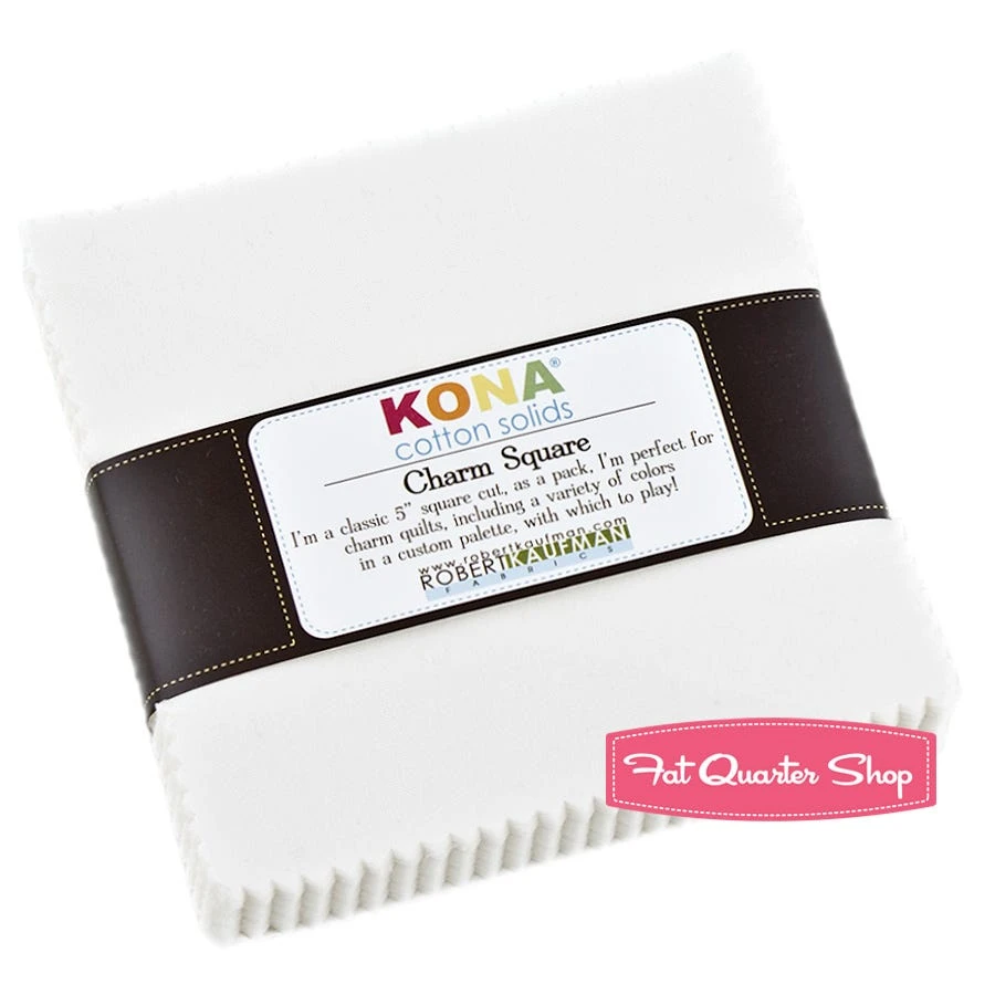 White Kona Cotton Solids Charm Pack includes 42 identical 5″ squaresSKU: K001-1387Color description: brightest white